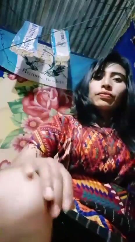 Beautiful Latina lady pulls up her skirt and fingers self