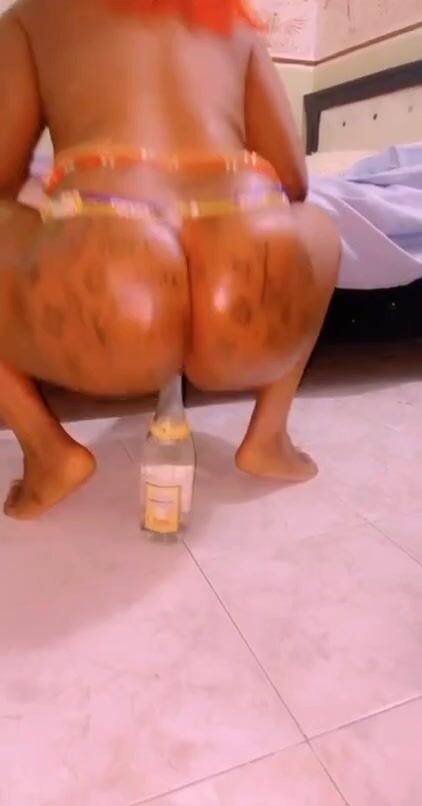 Elle chevauche un bouteille