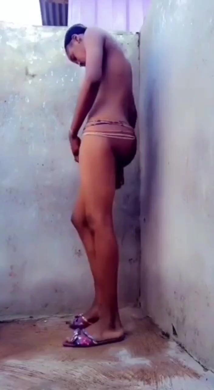 Tall skinny girl with a bushy pussy taking a video in the bathroom