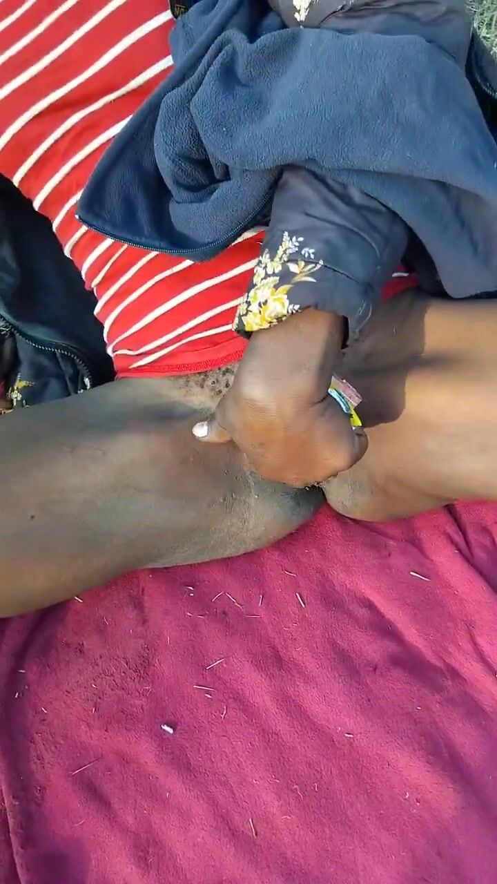 Local pussy peddling lady spread and fingers herself while outside for a customer